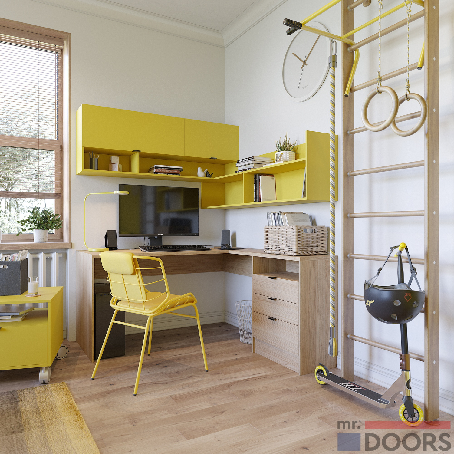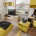 При изготовлении детской мебели используются только качественные и безопасные материалы. Корпусные и фасадные элементы: ламинированная плита в декоре “Манго” (желтый) и “Дуб Винченца”.