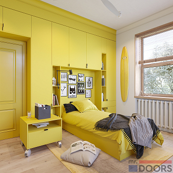 Яркая детская комната для одного ребенка. Комплект мебели включает в себя: