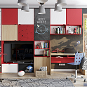 Дети растут и места в комнате становится все меньше. Для экономии пространства можно установить двухъярусную кровать, одна из стенок которой будет образовывать открытый стеллаж.