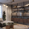 Стеллажная система для гостиной на основе алюминиевых стоек "Лофт" в декоре "Коньяк" может стать идеальным решением для заказчиков, которые любят стильные решения. Стеллаж не захламляет помещение, не ограничивает его объем. Наоборот, оставляет больше пространства, особенно по сравнению с классическими стенками для гостиной.