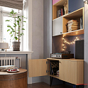 Корпусные и фасадные элементы выполнены из ламинированных плит сразу в нескольких вариантах декора: «Дуб Винченца» воспроизводит текстуру натурального дерева, «Фламинго» — нежный пудровый оттенок, «Орион» — акцентный синий, а «Кашемир» и «Тортора», оттенки бежевого, добавляют уюта. Модульные блоки проектируются индивидуально, так что в стеллажах можно сочетать открытые и закрытые боксы для хранения, добиваясь оптимальной компоновки стеллажа. Доставкой и сборкой занимаются специалисты Mr.Doors, так что мебель устанавливается в определённую для этого нишу, как влитая.