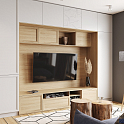 ТВ-юнит по центру - рамочные фасады «Нувола» декора «Дуб Винченца»;