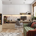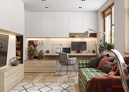 Этот проект является решением для гостиной под ключ. И как вы уже убедились, включает в себя все самое необходимое. Если вам нравится декор под натуральное дерево, вы можете остановиться на этом оформлении, нет -  просто скажите об этом нашим дизайнерам. Они с готовностью подберут варианты с учетом особенностей вашего ремонта, освещения в комнате.