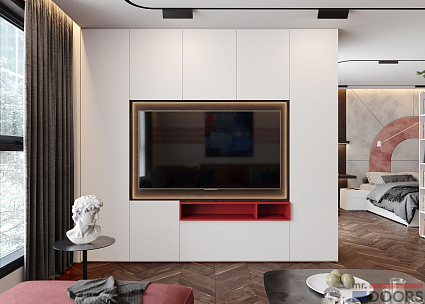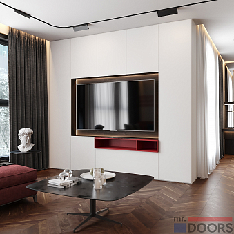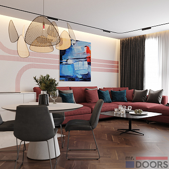 В современных квартирах очень часто встречается свободная планировка. И совершенно необязательно устанавливать там стены и перегородки. Все помещения можно выделить с помощью мебели. Если вам близок этот подход, приходите в Ателье Mr.Doors, и мы составим для вас персональный проект.