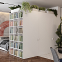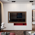 Мебель для гостиной из коллекции «Метрополитан» в современном стиле. Состоит из нескольких модулей. Первый - шкаф с торцевым стеллажом. Он разделяет спальню с гостиной. Второй – тв-юнит с открытой нишей для аудио-видео техники или игровой приставки и шкафами. Мебель, встроенная в помещение, занимает минимум места, но при этом выполняет все необходимые функции.