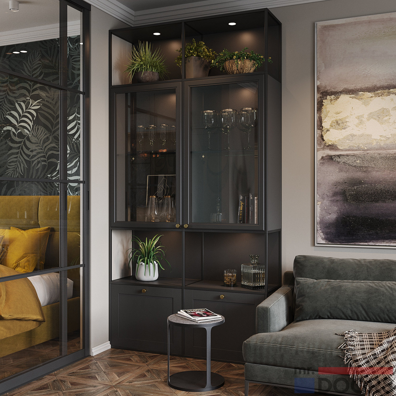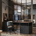 Минималистичный дизайн данной композиции разработан для небольших квартир, где не всегда есть возможность отвести полностью комнату под офис. Кабинет состоит из письменного стола и стеллажа, в котором имеются как открытые секции, так и защищённые стеклянными фасадами «Урбан».