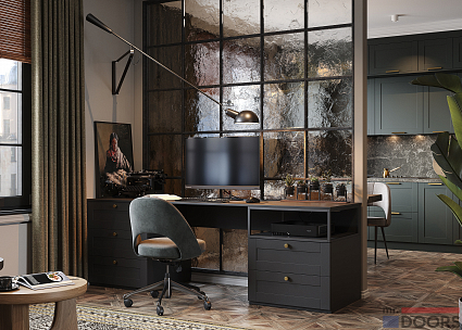 Кабинет 081 — это решение для тех, кому нужно компактное решение при максимуме функциональности. Декор «Графит» и строгие линии настраивают на рабочий лад, но при этом выглядят достаточно уютно.