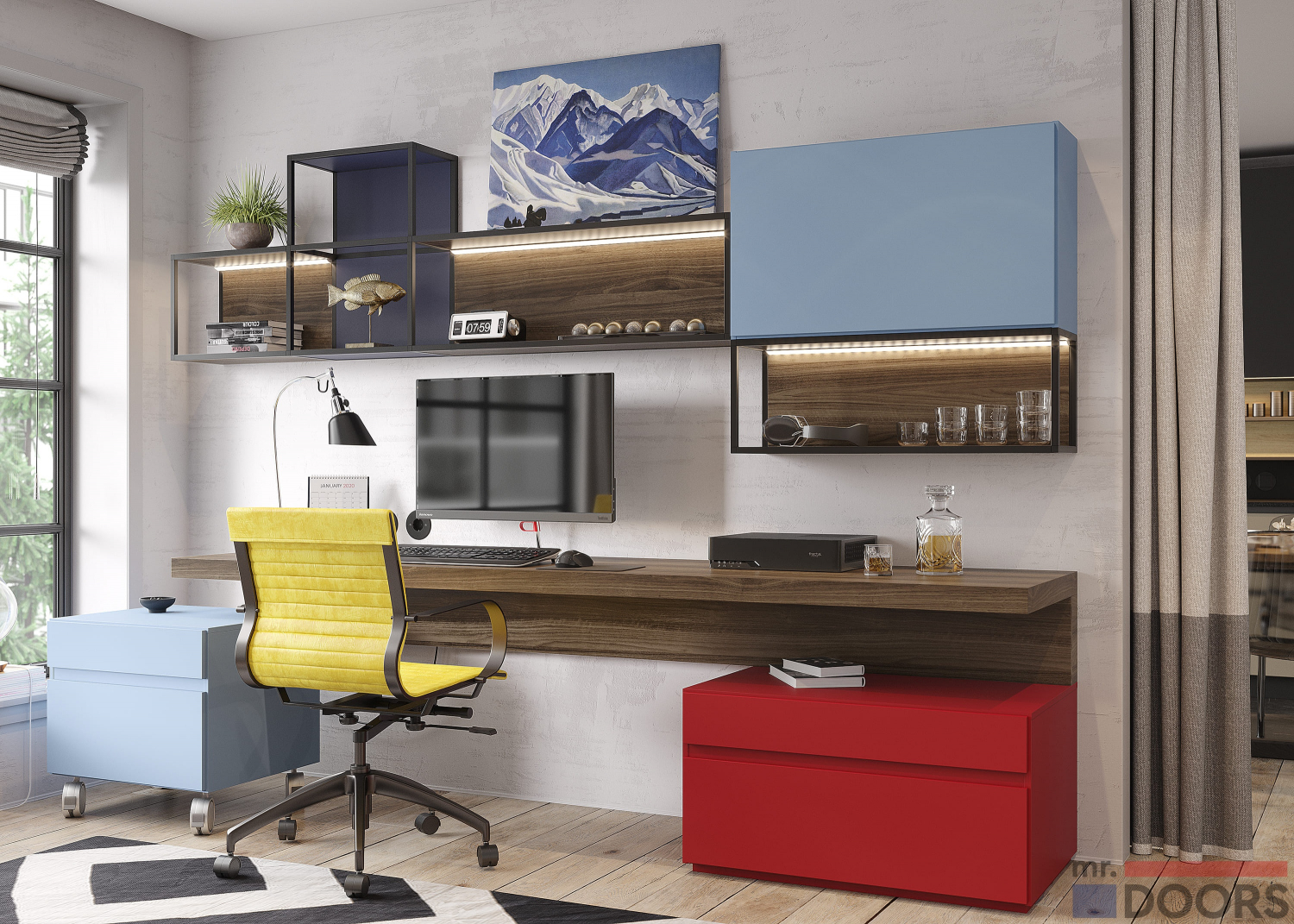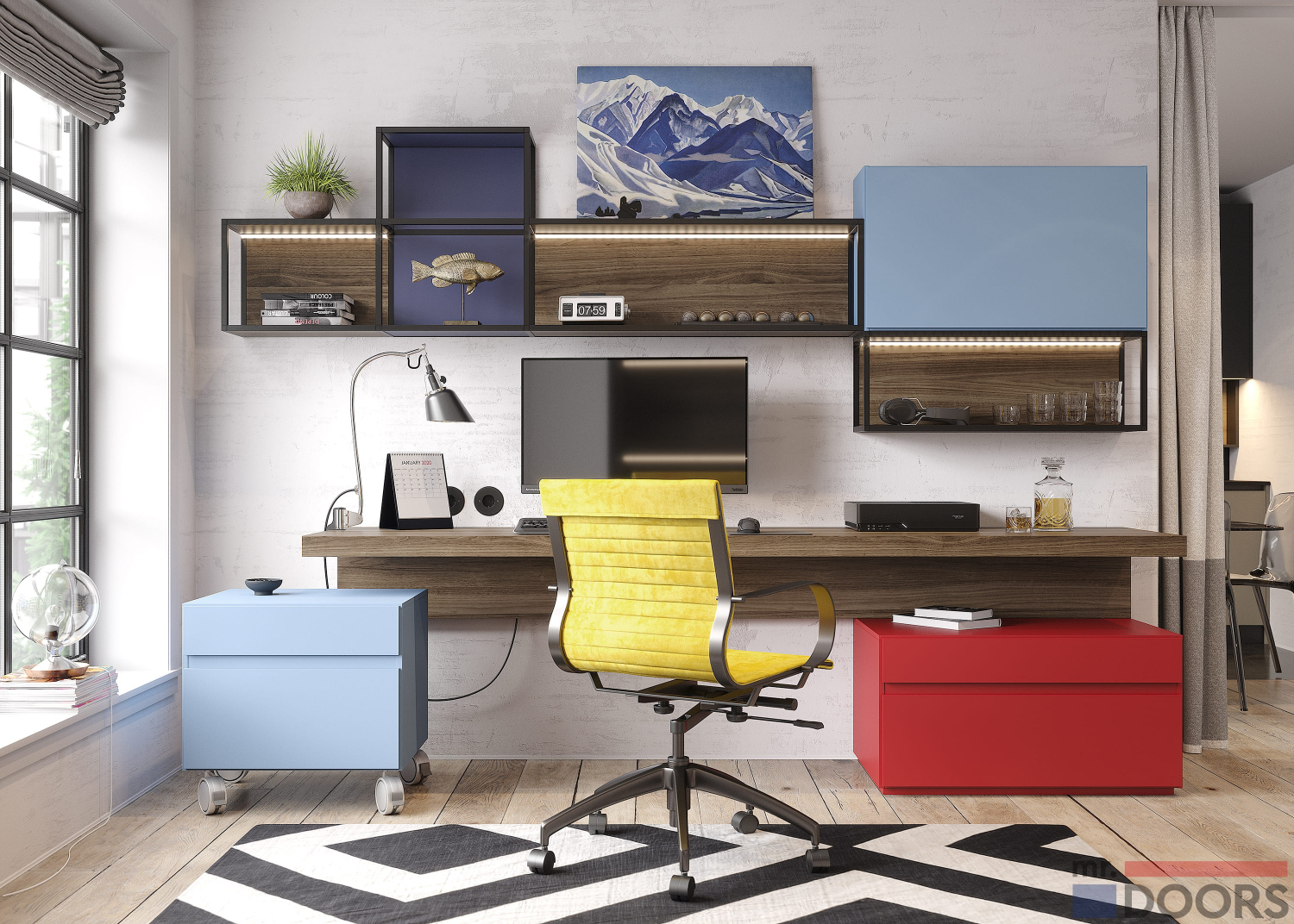 Кабинет (арт. 080) — это яркий модерн и полное удобство. Все элементы мебельной композиции рассчитаны на то, чтобы обеспечивать эффективный рабочий процесс. А яркий декор не позволит уставать, при этом не отвлекая.