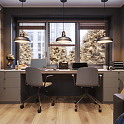 У нас достаточно много интересных проектов для домашнего офиса, но Кабинет 084 отличается от них всех тем, что предназначен для двоих. Длинная столешница, две симметричные тумбы — это лаконичный комплект, к которому вы можете добавить по желанию шкафы, стеллажи, другую мебель.