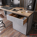 Корпус стола и задних стенок стеллажа выполнен из ЛДСП в декоре “Дуб Галифакс”.