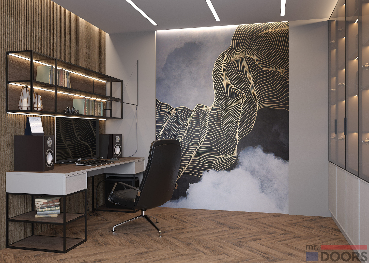 Кабинет (арт. 079) — это пример функционального разделения небольшого помещения на две зоны. Первая — это непосредственно рабочий стол, вторая представляет собой систему хранения.