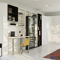 Кабинет из коллекции «Тейт» выполнен в стиле «итальянский модерн». Изящное сочетание белых фасадов и чёрный открытых секций, а также прозрачного стекла витринных элементов делает рабочее место и систему хранения универсальной, подходящей для любого интерьера. Корпус изготовлен из МДФ в плёнке в декорах «Сета Эдельвейс» и «Дуб тёмный». Фасады — из МДФ в белой высокоглянцевой эмали.