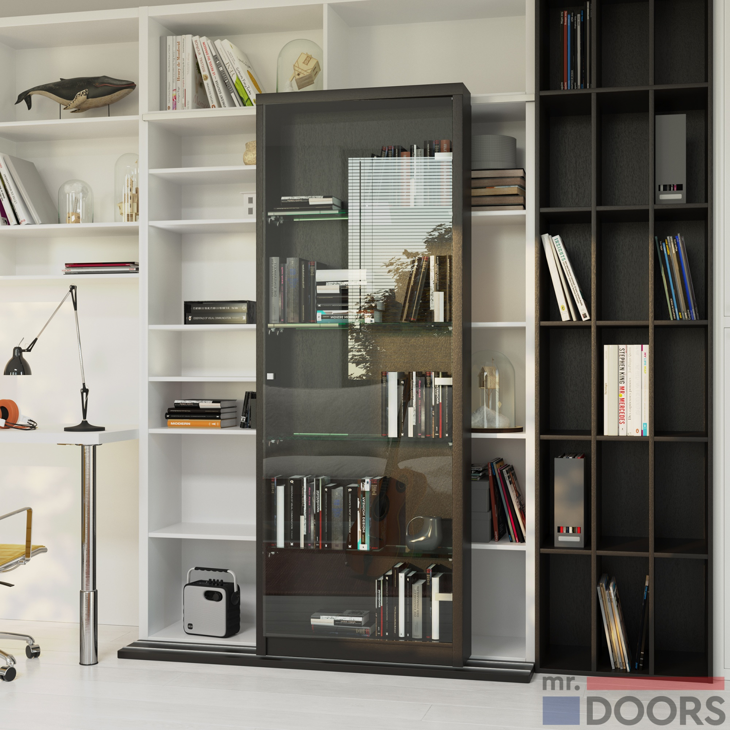В комплекс может входит передвижная библиотека со стеклянной дверцей и ручкой «Эхо», которая обеспечивает оптимальные условия для хранения книг.