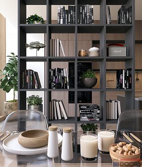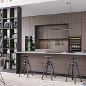 Помимо своих прямых функций кухня может служить и отличным зонирующим помещение элементом. Если ваша комната обладает внушительными размерами без перегородок, стоит присмотреться к проекту кухни из коллекции «Метрополитан», кухонный остров которой совмещен с открытым стеллажом.