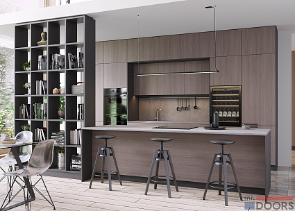 Если вы хотите, чтобы загородом было также комфортно, как и дома, приобретайте кухню из коллекции «Метрополитан». Оригинальный цвет фасадов «Дуб Винченца» отлично впишется в помещение светлых тонов.