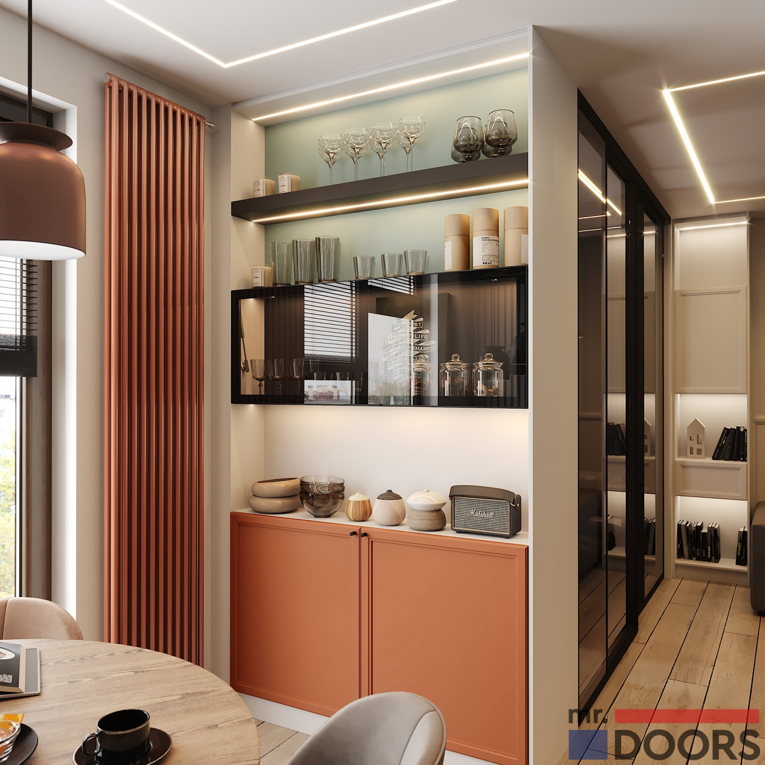 Открытый блок в верхних модулях выполнен в декоре «Графит».