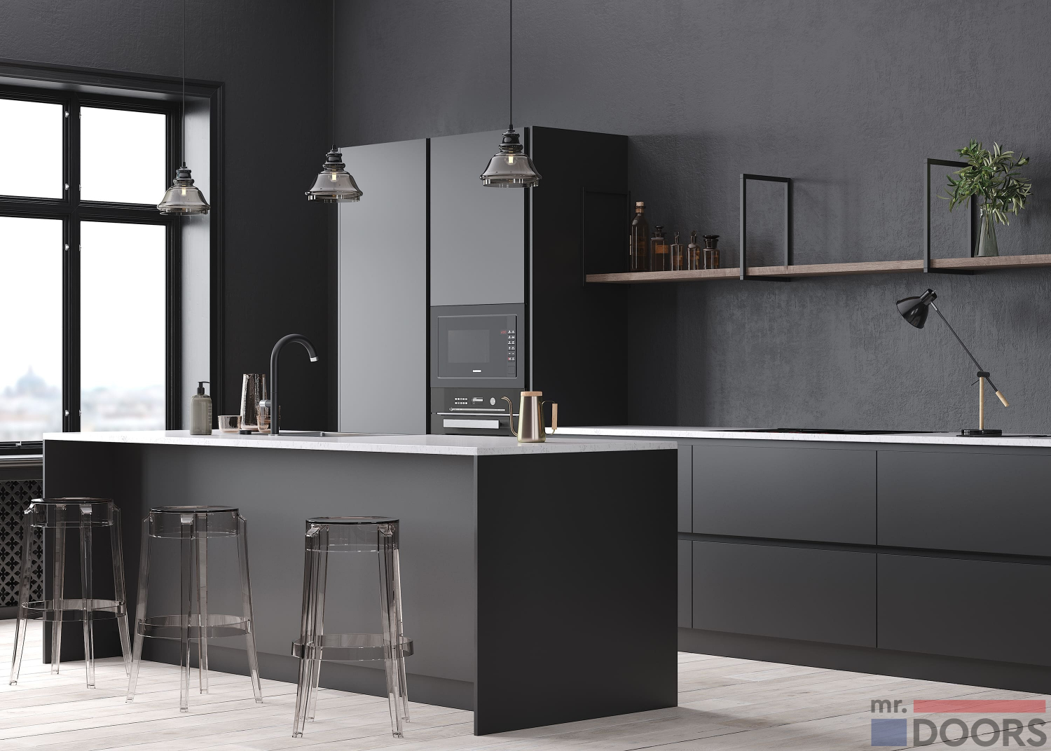 Фасады и сайды выполнены в матовой эмали декора «Чёрный».