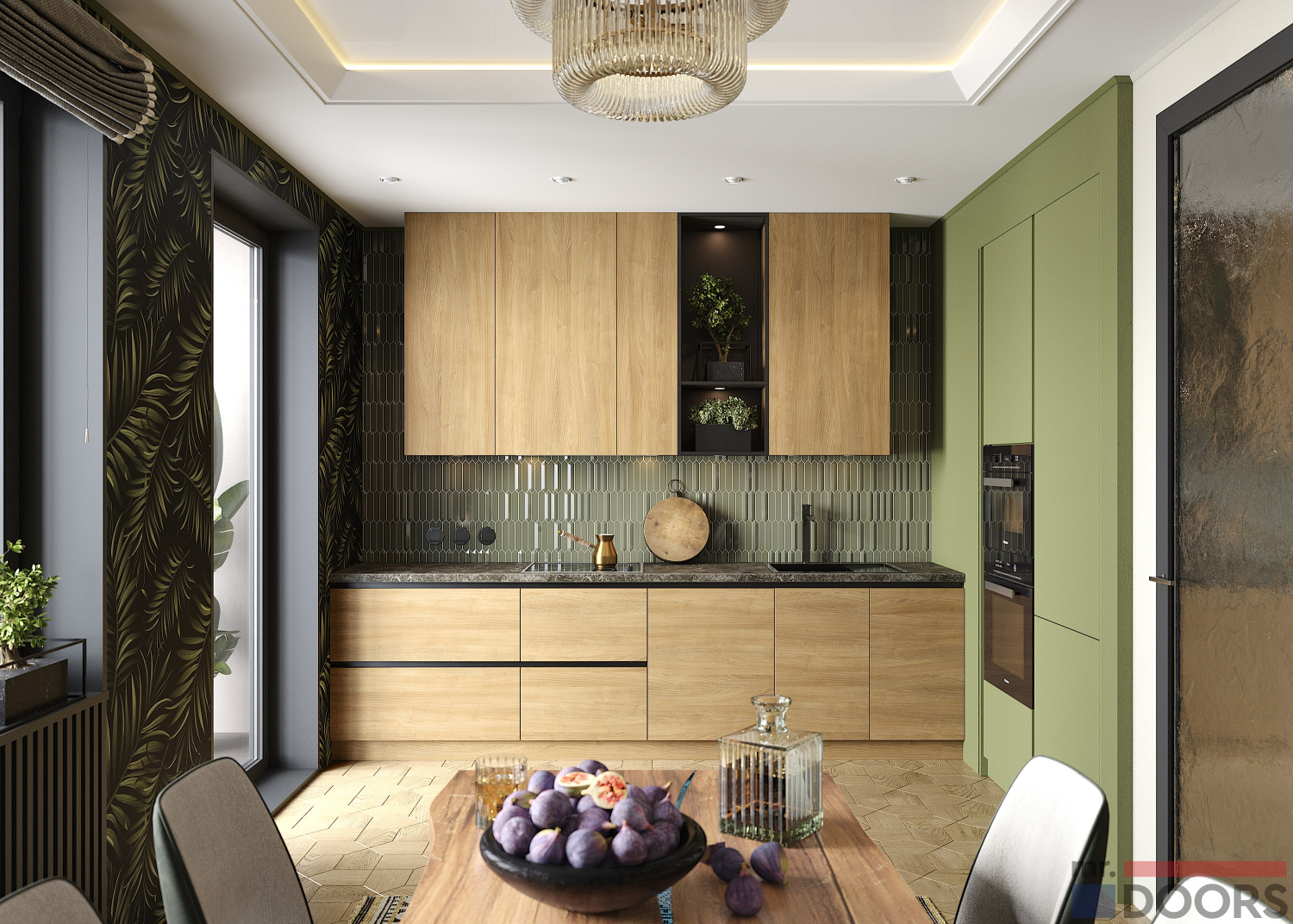 Зеленые фасады выполнены из МДФ в эмали в декоре Ral 6025