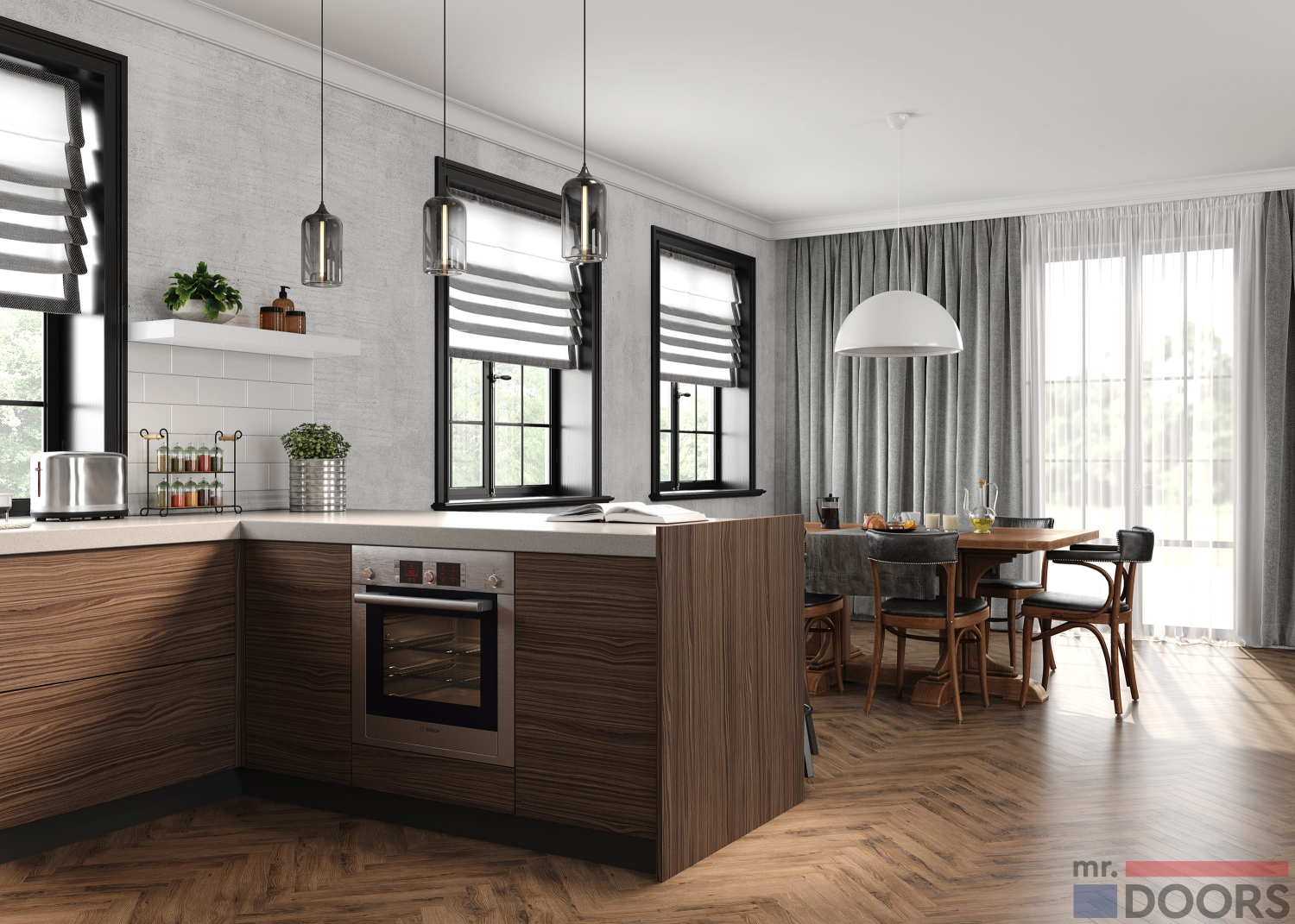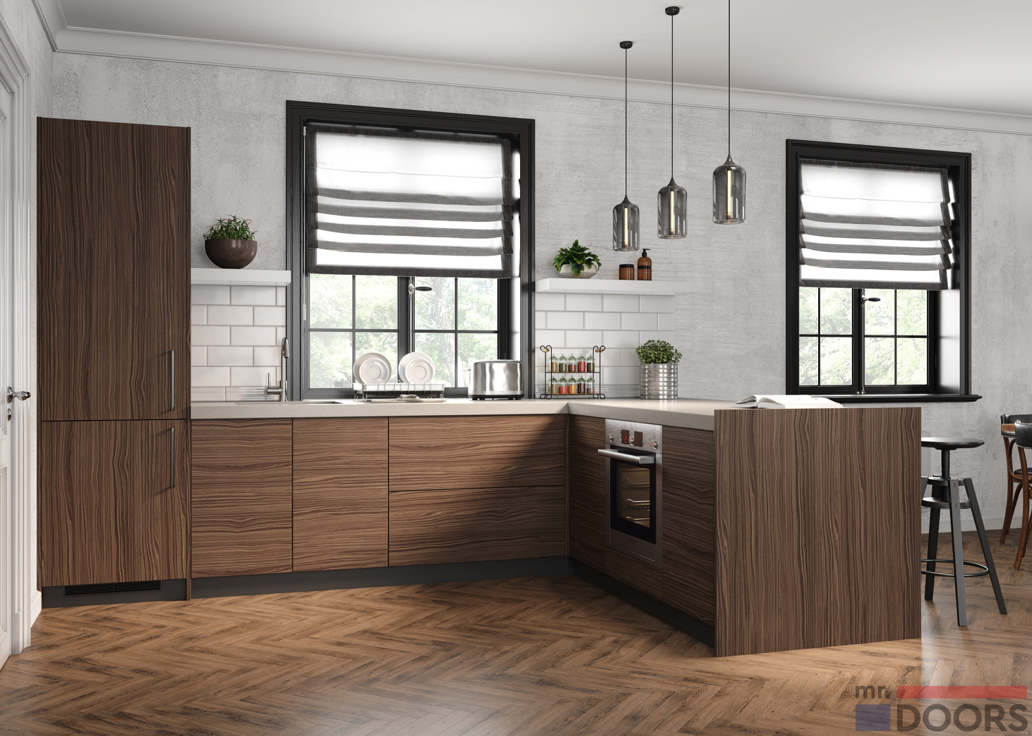 Фасады Prima в отделке шпоном, декор «Орех волнистый».