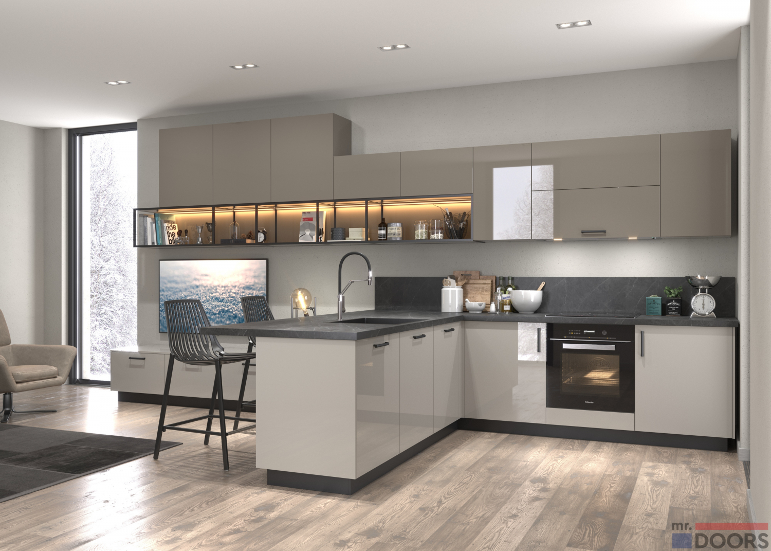 Декор верхних шкафов - «Тортора», нижних - «Кашемир».