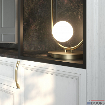 Неоклассические фасады дополняют изящные ручки серии «Урбан». Ящики комода оборудованы механизмом полного выдвижения и доводчиком для плавного бесшумного закрытия.
