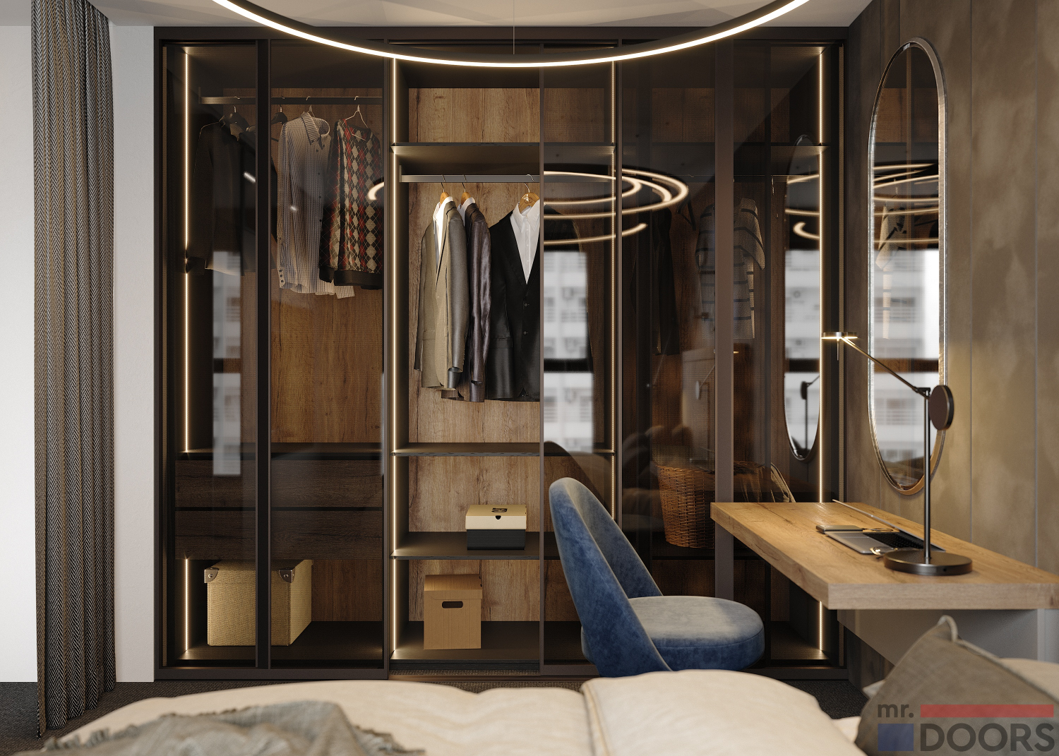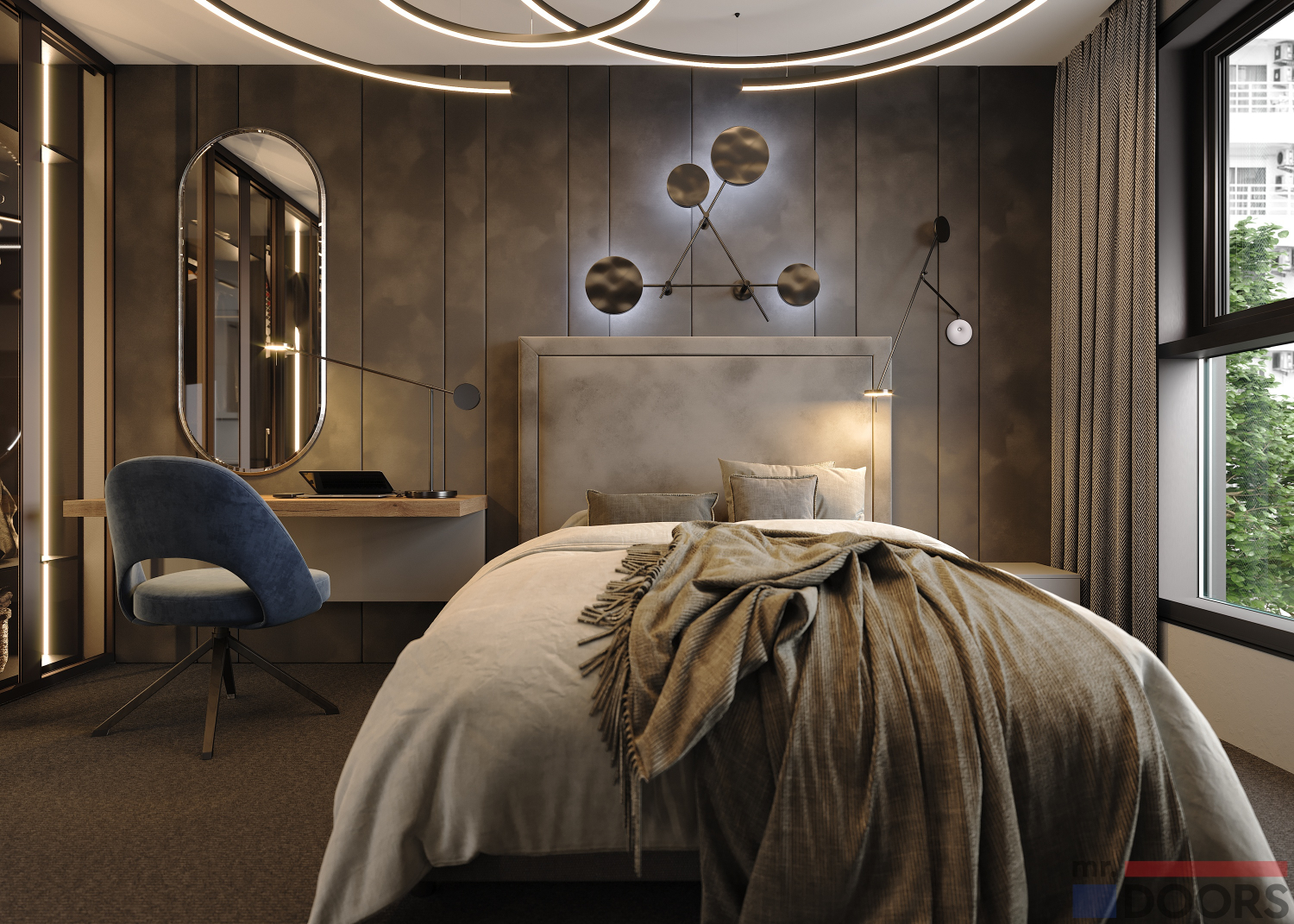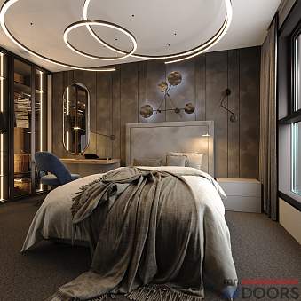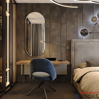 Специалисты Ателье Mr.Doors с большим вниманием относятся к подготовке проекта будущей спальни, изучают предпочтения заказчика и параметры помещения. Вся мебель производится по индивидуальным размерам. Благодаря этому наши решения так радуют клиентов.